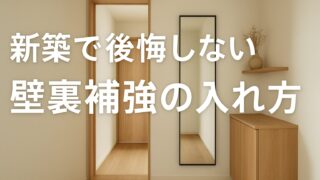 新築時にどこへ壁裏補強を入れるべきか迷っている方へ。玄関・洗面所・テレビ裏など、入れてよかった場所と後悔したポイントを実例付きで解説します。